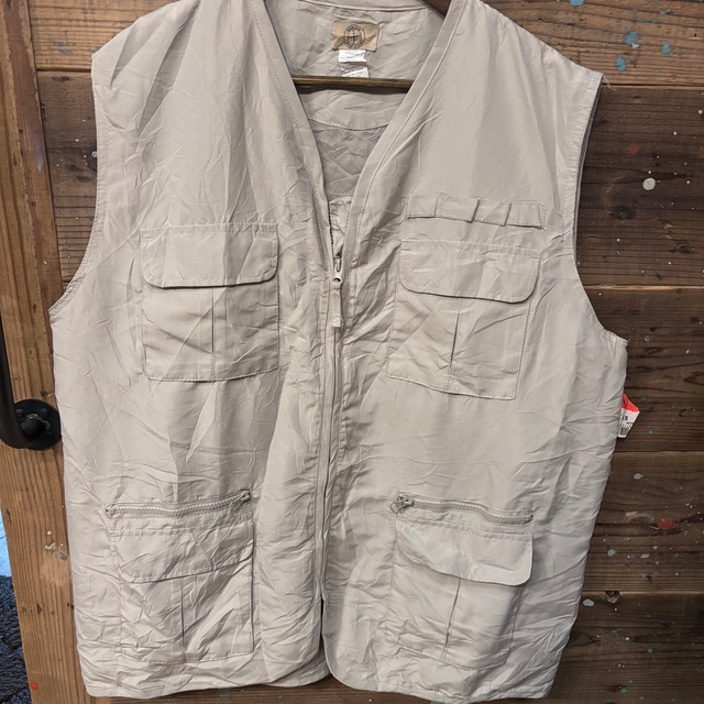 **アウトドアベスト サイズS ベージュ** あなたのアウトドアライフを一層充実させる、機能性とスタイルを兼ね備えたアウトドアベストです。このベージュのベストは、活動的なシーンで大活躍します! 【デザインの特徴】 このアウトドアベストは、しっかりとした生地のベージュの色合いが自然との相性抜群で、シンプルなデザインが魅力です。多機能なポケットを完備しており、必要な道具や小物を便利に収納できます。ハイキングやキャニオニングなど、さまざまなアウトドアシーンで大いに役立つアイテムです。 【サイズと素材】 サイズはSで、快適なフィット感を実現しています。軽量で通気性のよい素材が使用されており、動きやすさと機能性を両立させています。コーディネートもしやすく、カジュアルなファッションにもピッタリです。 - サイズ: S - 特徴: グリーンカラーの多機能アウトドアベストで、便利なポケットが付属した一品です。 ご覧いただきありがとうございます。