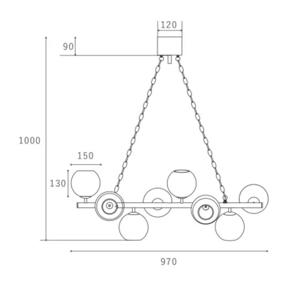 ビアリッツ8は、8つのガラスシェードが四方を照らすダイナミックなペンダントランプ。