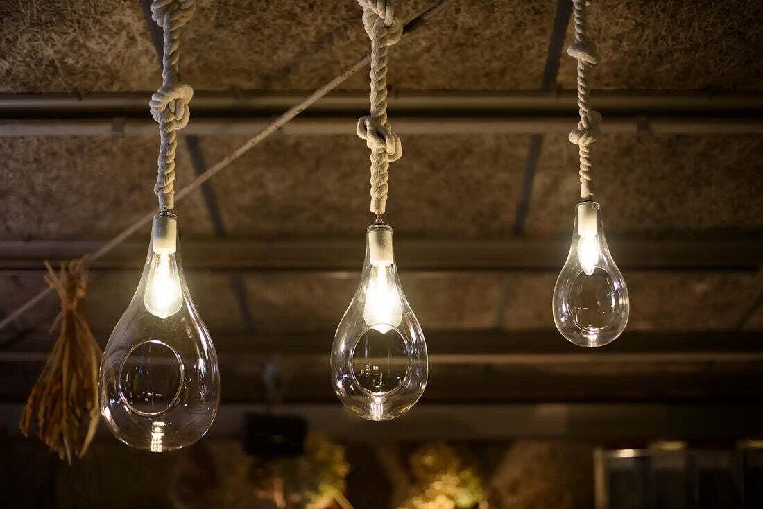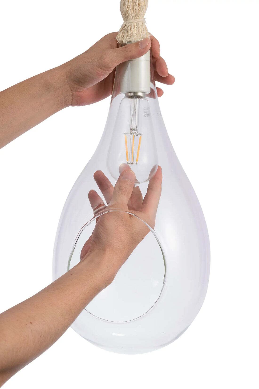 しずく型のガラス、結び目がアクセントになったコットンコードなど、細かい部分にこだわったおしゃれ照明。北欧テイスト・ナチュラル・ビンテージなど、幅広いインテリアにマッチします。