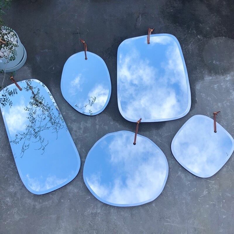 形を変えながらゆったりと流れる雲を切り取ったかのような壁掛けのミラー。無駄な装飾を全て排除したことで見える美しいシルエット。時計や絵を飾るように、違うサイズを組み合わせてウォールデコのように楽しんで下さい。鏡に写り込む日常が、まるでインテリアの一つのように感じられるはず。